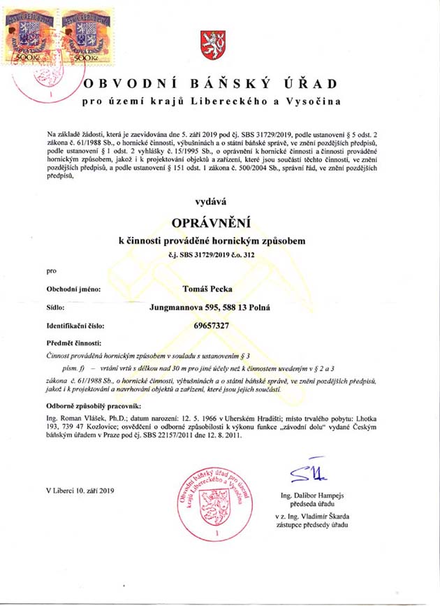 Certifikáty a oprávnění: OBVODNÍ BÁŇSKÝ ÚŘAD
