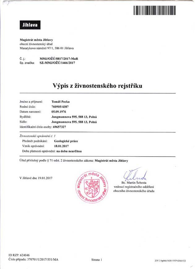 VÝPIS Z ŽIVNOSTENSKÉHO REJSTŘÍKU